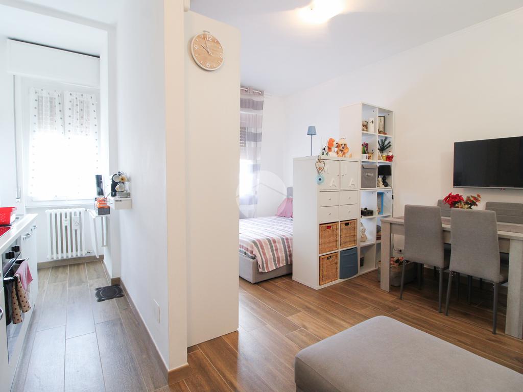 Composto da ingresso su zona giorno/notte, cucina a vista con uscita sul balconcino, e bagno dal design moderno, finestrato con doccia.